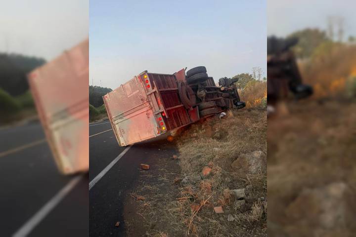 Un camión se volcó y un coche también se accidentó en la autopista Siglo XXI, tramo Uruapan - Lázaro Cárdenas, en el kilómetro 231+500.