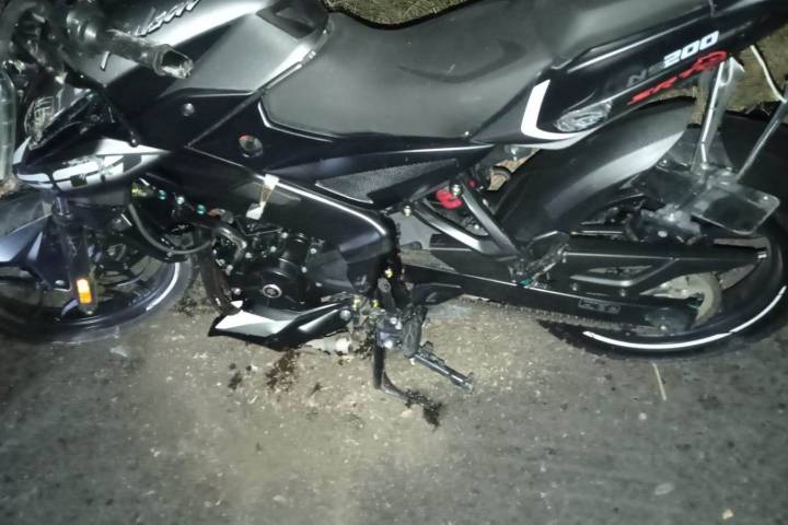 Datos obtenidos por este medio señalan que un coche compacto, color gris plata chocó contra un bovino y posteriormente, una motocicleta que iba detrás chocó contra el auto.