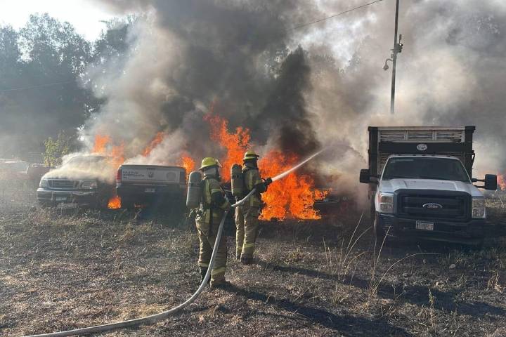 Se presume que el siniestro se derivó de una quema de pastizal, la cual se descontroló y llegó hasta la referida área donde están resguardados los vehículos, en las cercanías de las instalacione... Ver más...