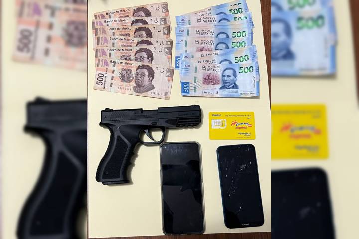 NOTICIAS 27/11/2022Tras una denuncia, detiene SSP en MaravatÃo a dos presuntos extorsionadores, con 10 mil pesosEn atención a una denuncia ciudadana, los oficiales de la SecretarÃa de Seguridad Pública (SSP), lograron detener a dos personas del sexo masculino, presuntamente señaladas por el delito de extorsión; también les fue asegurada la cantidad de 10 mil pesos, una réplica de arma de fuego y teléfonos móviles, hecho registrado en MaravatÃo.Â