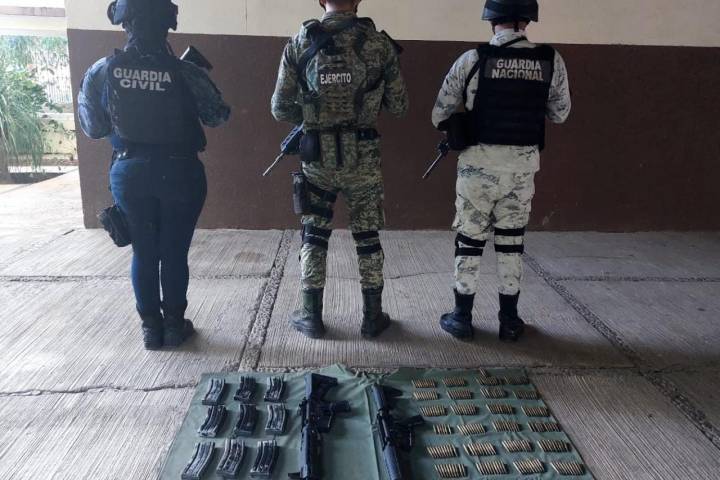 NOTICIAS 25/10/2022SSP, Sedena y GN aseguran armamento y equipo táctico en TepalcatepecTras realizar labores operativas a pie de tierra en el municipio de Tepalcatepec, los elementos de las Secretarías de Seguridad Pública (SSP) y de la Defensa Nacional (Sedena), en conjunto con la Guardia Nacional (GN); repelieron un ataque de civiles armados y como resultado aseguraron un arsenal con armas, cartuchos y equipo balístico.