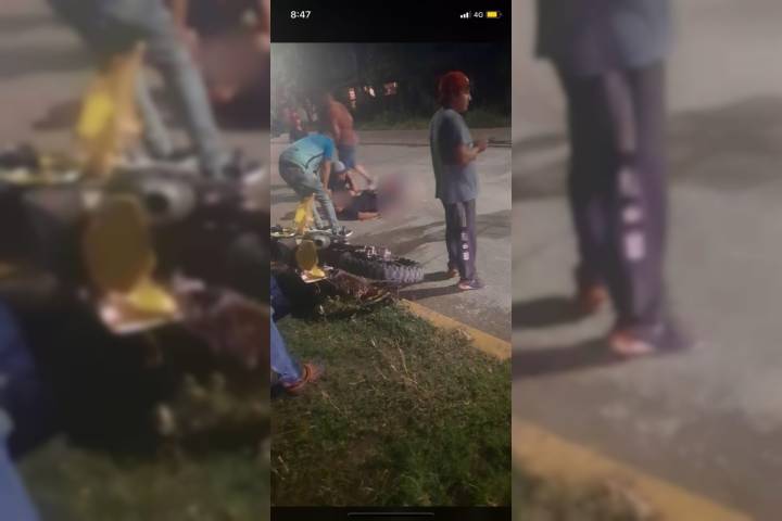 El siniestro ocurrió durante la noche de este sábado sobre la Avenida 22 de Octubre a la altura de los puentes Cuates ubicados sobre la colonia el Varillero, donde la moto en la que viajaban dos hombres se derrapó y estos quedaron tirados en el asfalto.