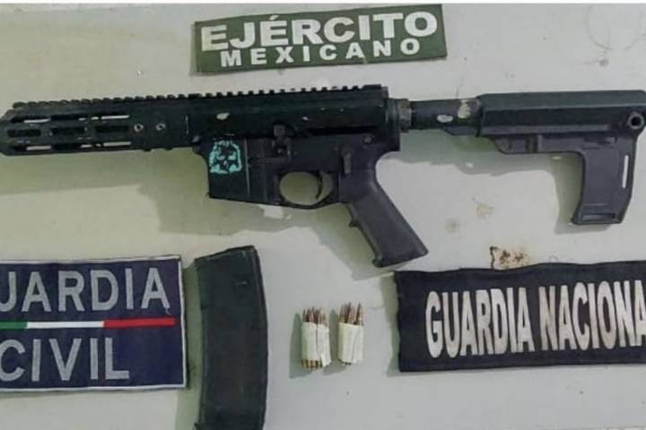 NOTICIAS 23/09/2022GC detiene a dos hombres en posesión de arma de fuego en UruapanDerivado de los recorridos de vigilancia en las calles del municipio de Uruapan y como parte de las medidas de seguridad implementadas por el Gobernador del Estado, Alfredo RamÃrez Bedolla, y llevadas a cabo por el personal de la SecretarÃa de Seguridad Pública (SSP), detuvieron a dos hombres en posesión de un arma de fuego con cargador, cinco cartuchos útiles y un envoltorio con droga, de igual manera se les decomisó un vehÃculo.