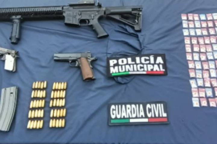 NOTICIAS 09/09/2022Guardia Civil y PolicÃa Municipal detienen a tres en posesión de armas de fuego, 82 cartuchos y 98 dosis de droga Resultado del reforzamiento operativo que se realizó en Jacona durante las últimas semanas, los elementos de la SecretarÃa de Seguridad Pública (SSP), y de la PolicÃa Municipal, detuvieron a tres personas del sexo masculino, en posesión de dos pistolas y un fusil, asà como 82 cartuchos útiles y 89 envoltorios que contenÃan sustancia granulada con las caracterÃsticas propias de la metanfetamina.