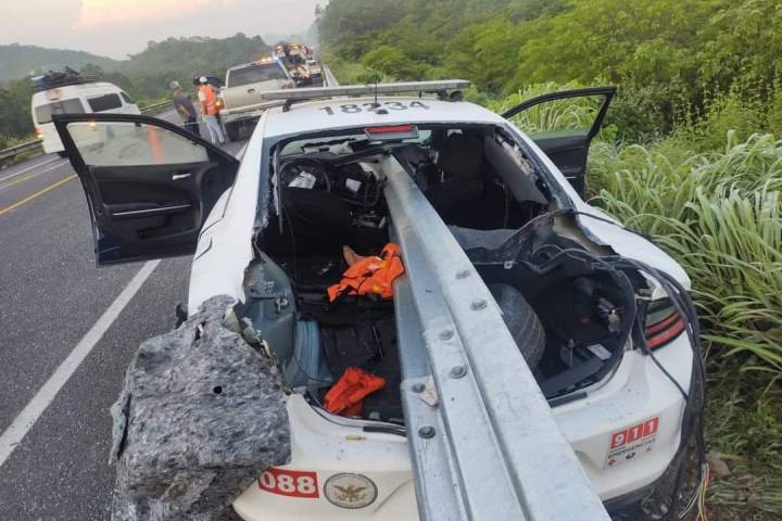 Durante las últimas horas se registraron dos aparatosos accidentes en la autopista Siglo 21, dentro de territorio guerrerense, en uno de los percances dos elementos de Guardia Nacional resultaron heridos al incrustar su patrulla en una barra de contención y en otro un tractocamión ardió en llamas.