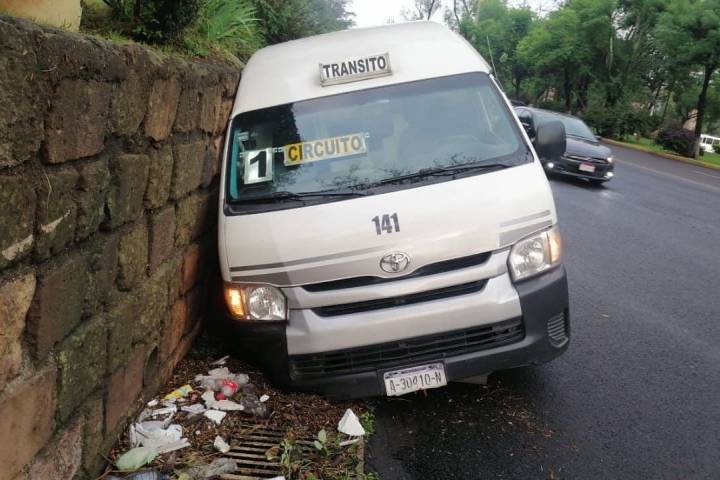 Una combi de la Ruta Gris Circuito cayó a una cuneta del desagüe pluvial y su costado derecho se impactó contra un muro de concreto, hecho que ocurrió la mañana de este lunes en el Periférico Paseo de la República, al sur de Morelia.