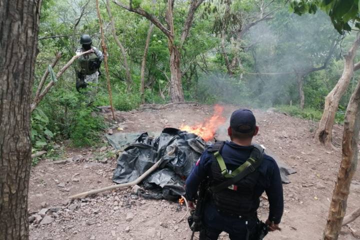 NOTICIAS 13/08/2022SSP, Sedena y GN aseguran y desmantelan campamento clandestino en AguilillaResultado de las acciones para el aseguramiento de la paz en el municipio de Aguililla, los elementos de las secretarías de Seguridad Pública (SSP), y de la Defensa Nacional (SEDENA), así como la Guardia Nacional (GN), aseguraron y desmantelaron un campamento clandestino, usado por presuntos miembros de grupos delictivos.