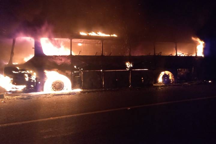 NOTICIAS 03/08/2022Autobús arde en llamas en la Autopista Siglo XXI