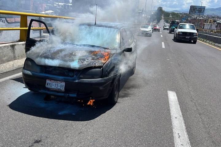 Un vehículo ardió en llamas cuando circulaba sobre un puente ubicado en la avenida Madero Poniente de Morelia. Por fortuna no hubo lesionados ni fallecidos, trascendió en la labor noticiosa.