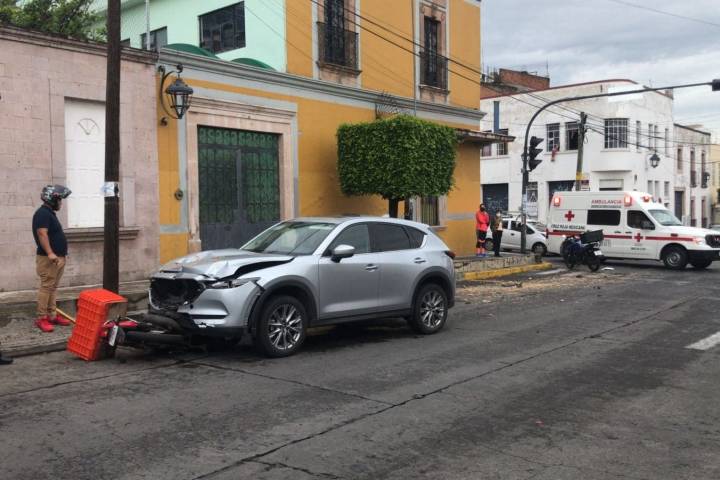 Un hombre resultó lesionado cuando su motocicleta fue impactada por un automóvil en la colonia Centro de Morelia, trascendió en la labor noticiosa.