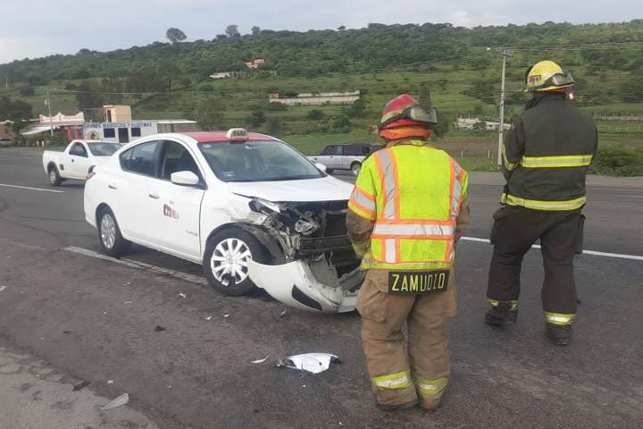El accidente sucedió este lunes a la altura de la población de Cuto del Porvenir, municipio de Tarímbaro. Se apreció que una de las unidades tiene rótulos de Taxi Morelia.