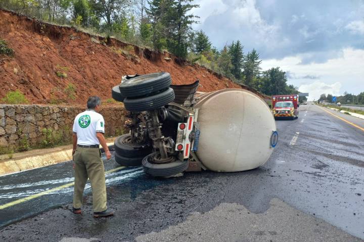El percance vial tuvo lugar en las inmediaciones del kilómetro 62+000, del tramo carretero Pátzcuaro ? Uruapan, donde la "salchicha" terminó volcada y con fuga de combustible, por lo que al sito acudieron los Ángeles Verdes, paramédicos y elementos ... Ver más...