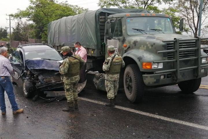 Dos vehículos particulares y un camión militar protagonizaron un aparatoso choque sobre la avenida Madero Poniente de Morelia, el cual dejó dos personas lastimadas, informaron autoridades policiales.
