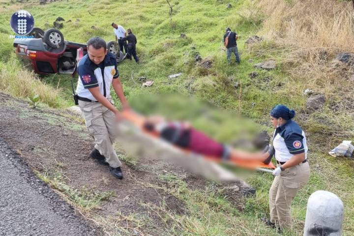 La mañana de este viernes, se registró la volcadura de una camioneta en la cual viajaban un hombre y su señora madre, este última resultó lesionada y fue hospitalizada.