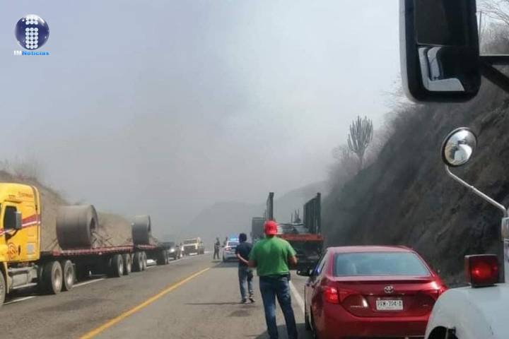 Dos tráileres se impactaron en la autopista Siglo XXI, a la altura de este municipio de Arteaga, tras lo cual uno de ellos que iba cargado con gasolina se incendió, donde quedó totalmente bloqueada la circulación.