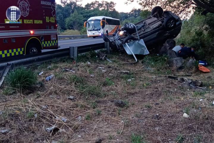 Una mujer resultó lesionada, al volcar su vehículo y terminar volcado a un costado de la carretera de cuota Pátzcuaro ? Uruapan. La afectada fue auxiliada por paramédicos.