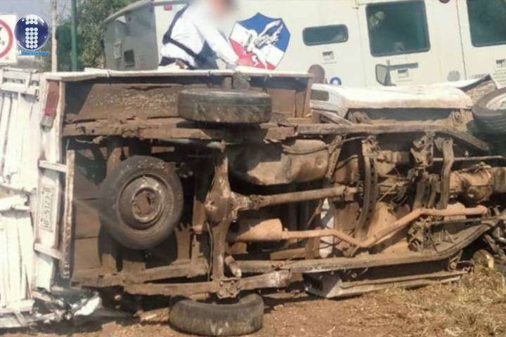 NOTICIAS 23/05/2022Tres menores resultan heridos al volcar su camioneta en el Libramiento Sur de Jacona