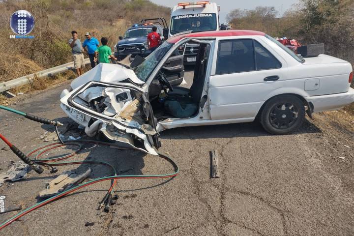 Debido a la colisión el chófer y su clienta resultaron atrapados entre los fierros de la unidad.