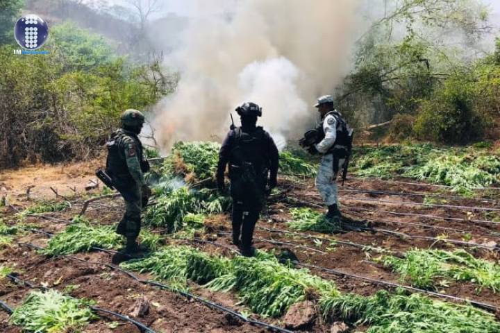 NOTICIAS 13/05/2022En otro hecho, SSP localiza y destruye 8 plantíos de marihuana Como resultado al operativo interinstitucional que mantienen elementos de la Secretaría de Seguridad Pública (SSP), en coordinación con la Defensa Nacional (SEDENA), y Guardía Nacional (GN), se logró localizar y destruir 8 plantíos de marihuana en esta demarcación.