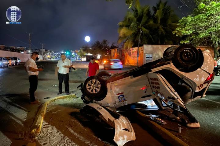 El accidente ocurrió sobre el cruce de la avenida Belisario Domínguez y calle manglar junto la colonia el Palmar 77 cerca de plaza las Américas donde el vehículo de la marca Dodge de la línea Hyundai color blanco placas del servicio público de la línea de Radio taxi Pacífico volcara quedando con las llantas hacia arriba sobre el came... Ver más...