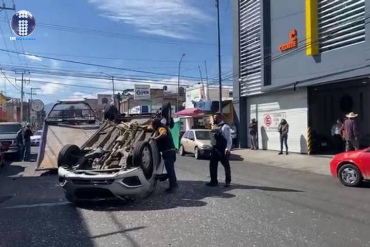 Un auto se salió de control y golpeó varios autos estacionados para después terminar volcado sobre su toldo en la avenida Cuautla, en la colonia Juárez.