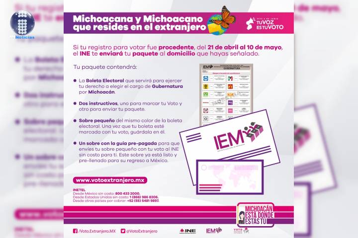 NOTICIAS 11/05/2021 Voto electrónico: cómo votarán michoacanas y michoacanos que radican en el extranjero Las y los michoacanos que se registraron para poder votar desde el exterior y que ya han recibido la aprobación para votar desde el extranjero de manera electrónica, tienen hasta el 21 de mayo para poder conocer el Sistema de Voto Electrónico por Internet (SIVEI).