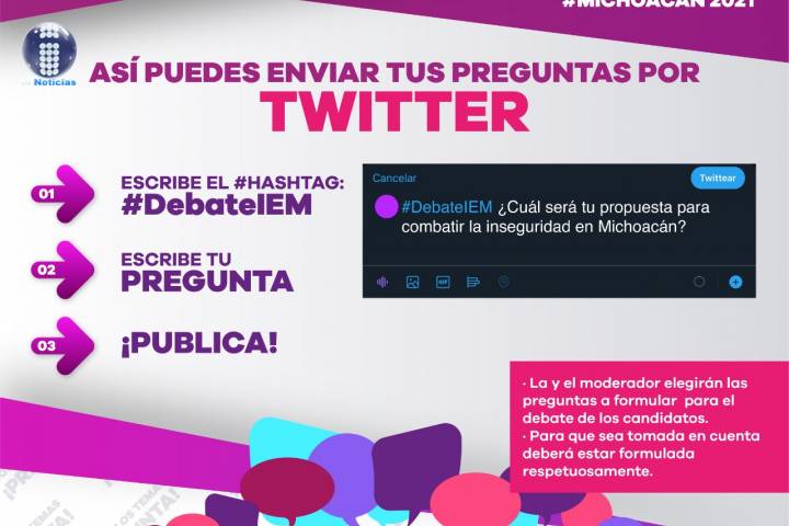 NOTICIAS 04/05/2021Invita IEM a la ciudadanía michoacana a participar en el segundo debate a la gubernatura Con la finalidad de que las Candidaturas conozcan los temas que les preocupan a ciudadanas y ciudadanos o aquellos que son de mayor interés y se garantice la participación ciudadana, el Instituto Electoral de Michoacán (IEM) invita a la población en general a participar en la Convocatoria de Participación Ciudadana para el Segundo Debate a la Gubernatura del Estado de Michoacán, que se realizará el próximo 12 de mayo.