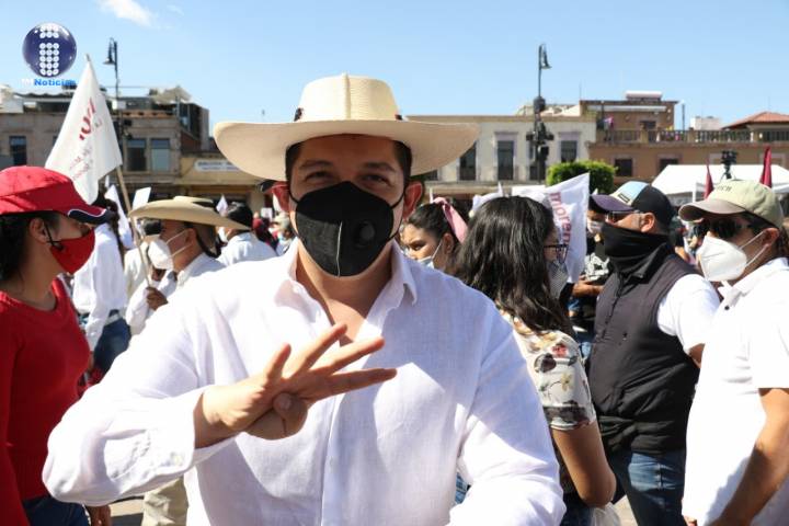 NOTICIAS 02/05/2021Al grito de Un fundador será gobernador inicia la campaña del morenista Alfredo Ramírez Bedolla"Un fundador será gobernador" fue el grito de la multitud reunida en la Plaza Valladolid de Morelia, para dar la bienvenida al candidato a la gubernatura del estado por Movimiento Regeneración Nacional y Partido del Trabajo, Alfredo Ramírez Bedolla, quien señaló que el pueblo ganará la elección el próximo 6 de