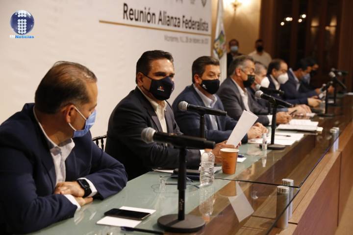 NOTICIAS 26/02/2021Acepta Alianza Federalista pacto; pide excluir a Servidores de la Nación del plan de vacunasEn reunión plenaria, este viernes los 10 Gobernadores que integran la Alianza Federalista, aceptaron el pacto nacional por la democracia y pidieron al Presidente de la República, Andrés Manuel López Obrador, excluir a los denominados servidores de la nación del plan vacunación contra el COVID-19.
