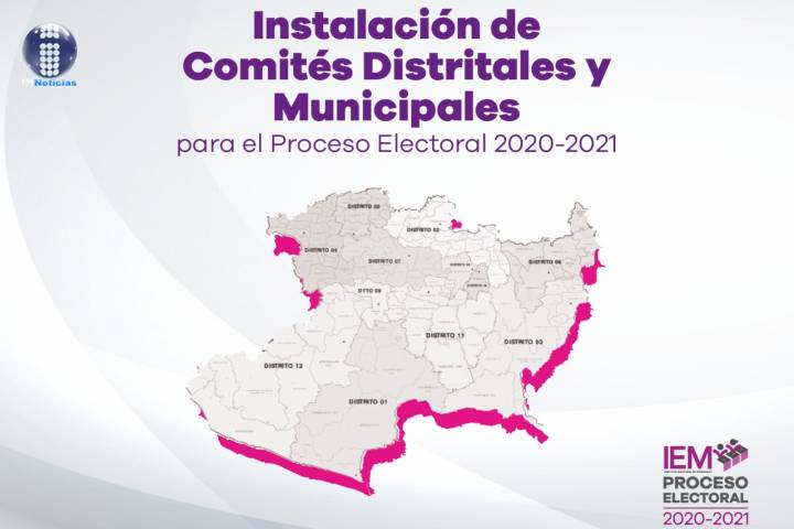 NOTICIAS 18/12/2020Instalan y rinden protesta los integrantes de los 116 comités distritales y municipales del IEMPara intervenir en la preparación, desarrollo y vigilancia del Proceso Electoral 2020-2021 en 112 municipios y 24 distritos electorales, esté dÃa 928 ciudadanas y ciudadanos ejemplares hacen historia al rendir protesta durante la instalación de los 116 Consejos Distritales y Municipales, y asà iniciar labores en beneficio de todas y todos los michoacanos.