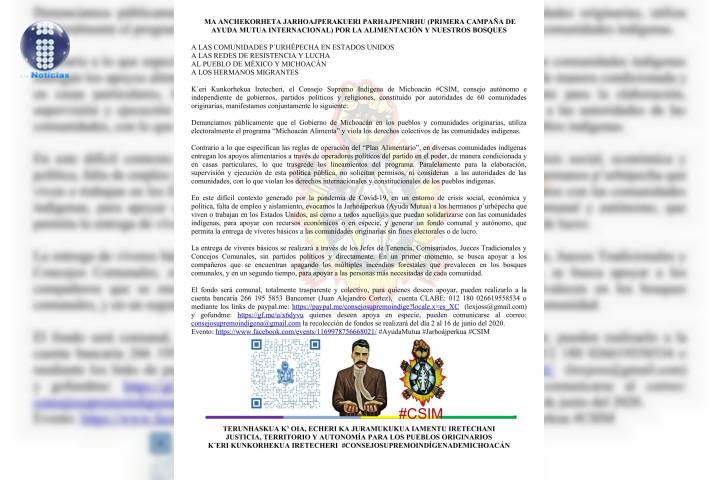 El Consejo Supremo IndÃgena de Michoacán #CSIM, consejo autónomo e independiente constituido por autoridades de 60 comunidades originarias, denunciaron públicamente que el Gobierno de Michoacán en los pueblos y comunidades originarias, utiliza electoralmente el programa "Michoacán Alimenta" y viola los derechos colectivos de las comunidades indÃgenas.