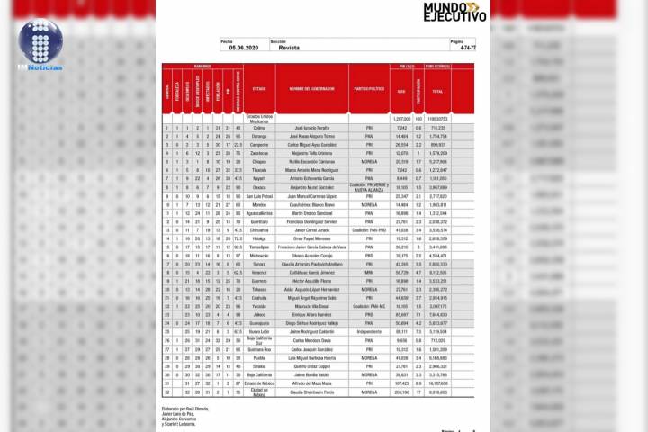 En la publicación se señala que el mandatario obtuvo 97 puntos, solo por detrás de Jalisco, Enrique Alfaro RamÃrez, que obtuvo 98.