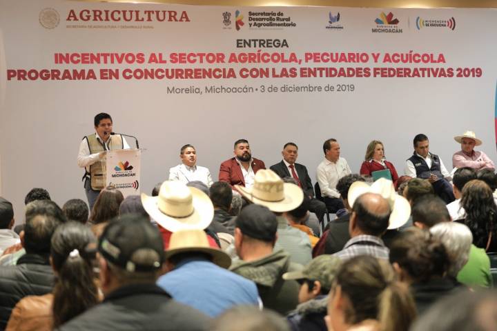 NOTICIAS 03/12/2019Entregan federación y estado, apoyos a productores michoacanosCon la finalidad de elevar la productividad como medio para incrementar el crecimiento de la economía y el Bienestar de las familias, el Gobierno de México hizo la entrega de cartas del programa Concurrencia con las Entidades Federativas 2019 en el Estado de Michoacán.