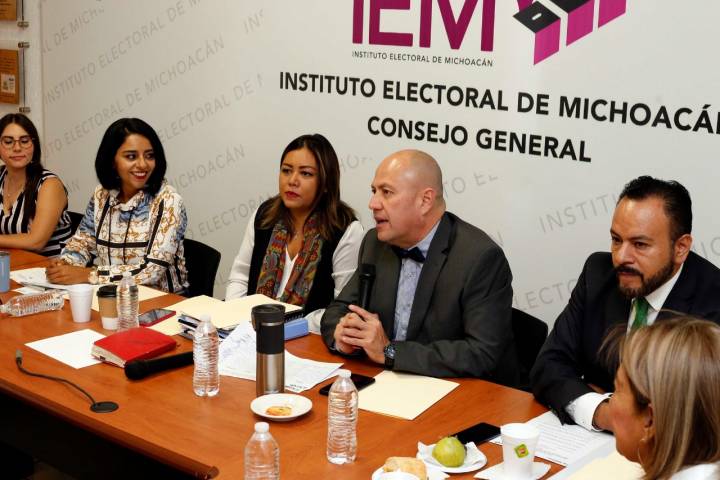 En sesión ordinaria realizada este viernes las y los integrantes del Consejo General del Instituto Electoral de Michoacán (IEM), el consejero presidente Dr. Ramón Hernández Reyes, y los consejeros electorales Lic. Irma Ramírez Cruz, Dr. Humberto Urquiza Martínez, Dra. Yurisha Andrade Morales y Lic. Luis Ignacio Peña Godínez, aprobaron el proyecto mediante el que se aprueba la convocatoria y el procedimiento de evaluación para ocupar la... Ver más...
