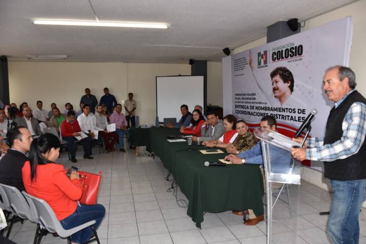 Lo anterior durante la entrega de nombramientos a los 24 delegados que coadyuvarán con los trabajos de la Fundación Colosio filial Michoacán, que preside Olivio López Mújica.