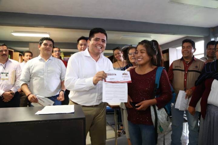 NOTICIAS 18/06/2019Llegarán a Michoacán 19 mil nuevas Becas Benito Juárez La Secretaría de Bienestar en Michoacán realizó esta mañana la entrega de mil 620 Becas Benito Juárez a alumnos de Uruapan del nivel medio superior.