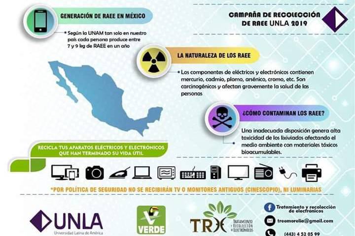 NOTICIAS 02/06/2019Arrancará PVEM campaña recolectora de aparatos eléctricos en desuso El Partido Verde Ecologista de México (PVEM), en Michoacán, reitera su compromiso de preservar y trabajar a favor del medio ambiente, por ello, encabezará la campaña de recolección de aparatos eléctricos y electrónicos que, a partir de este lunes tres al miércoles cinco de junio, arrancará en las instalaciones de la Universidad Latina de América (UNLA).