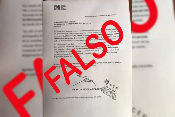 NOTICIAS 08/08/2018Apócrifo documento de renuncia de Víctor Silva al CDE del PRI Documento apócrifo la supuesta renuncia de Víctor Silva Tejeda al Comité Directivo Estatal del PRI Michoacán.
