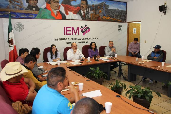 Los miembros de la Comisión Electoral de Atención a Pueblos Indígenas del Instituto Electoral de Michoacán (IEM) celebraron una reunión con jefes de tenencia de las comunidades de Nahuatzen, a la que asistieron el subsecretario de gobernación, Armando Hurtado Arévalo, y el presidente municipal electo, David Otlica Avilés.