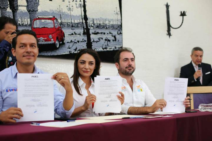 El aspirante por los Partidos de la Revolución Democrática (PRD), Acción Nacional (PAN) y Movimiento Ciudadano (MC) asistió a la firma para sumarse al Código de Etica de la asociación c... Ver más...