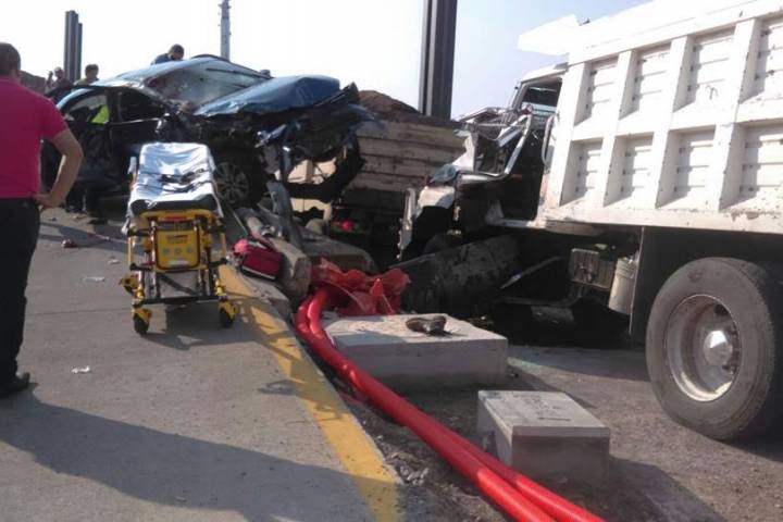 Un checador de vehículos de carga pereció al ser impactado por un coche que a su vez se estrelló contra un camión volteo, hubo dos heridos, entre ellos la conductora del carro particular y el chofer de la pesada unidad.
