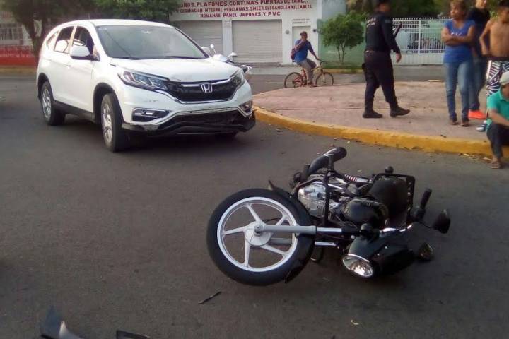 Un motociclista quedó con una pierna fracturada y varias contusiones luego de ser atropellado por una camioneta, cuya conductora fue detenida por las autoridades para determinar responsabilidades.