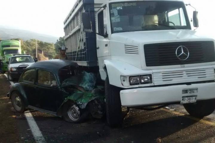 Una joven y un hombre de la tercera edad perdieron la existencia al momento de que el Vocho en el que iban protagonizó un choque contra un camión tipo volteo en la carretera Uruapan-Pátzcuaro, en las inmediaciones de la comunidad de San Andrés Coru, perteneciente a este municipio, así lo dijeron fuentes policiacas.