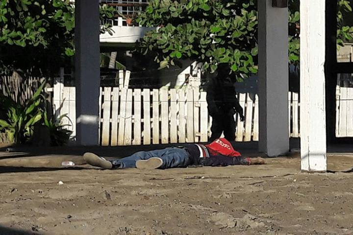 Tirado en la banqueta quedó la víctima de nombre Moisés "N", de 50 años de edad, quien al resultar herido de varios impactos de bala sus vecinos trataron de ayudarlo.