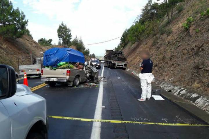 Una camioneta terminó destrozada del frente al protagonizar un choque contra un tráiler. La primera unidad trasladaba un cargamento de frutas y verduras, en ella falleció una mujer y el chofer quedó malherido. Las víctimas estaban prensadas y fueron liberadas con la ayuda de equipo hidráulico, según la información obtenida en la labor periodística.