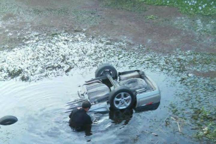 Un automóvil se salió de control, golpeó contra una barra de contención metálica que está en un puente y terminó dentro de un canal de riego con las llantas hacia el cielo, el chofer perdió la existencia, trascendió en la cobertura noticiosa.