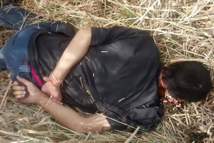 El cadáver de un hombre que fue ejecutado de un balazo en la cabeza fue hallado tirado en un terreno que está frente a unas canchas de fútbol, el fallecido estaba maniatado, tenía los ojos tapados con unos trapos y sus victimarios le dejaron un letrero, el cual es materia de investigación por parte del personal de la Fiscalía Regional de Justicia.