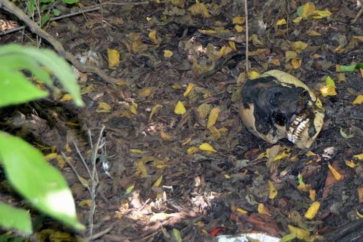 Una osamenta humana fue hallada por unos perros en un predio situado al lado de un salón de fiestas, ubicado en esta ciudad de Lázaro Cárdenas, a donde arribó el personal de la Fiscalía Regional de Justicia para iniciar las investigaciones competentes.