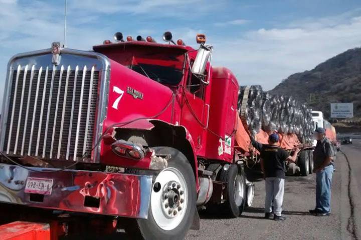 En ese lugar un tractocamión de la marca Kenworth, de cabina blanca, con placas de circulación 863EA5, mismo que llevaba un cargamento de láminas de metal, golpeó en el costado izquierdo a un Kenwort... Ver más...