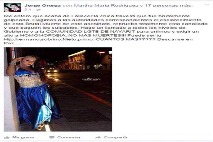 NOTICIAS 08/01/2016Asesinan a golpes a Miss Gay Un miembro de la comunidad Lesbico-gay de Nayarit, falleció el pasado jueves en el municipio de Ixtlán del Río, Nayarit, luego de haber sufrido una tremenda golpiza a manos de desconocidos en el poblado de Etzatlán, Jalisco.